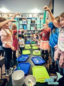 Każdy turnus to także doświadczenia i eksperymenty chemiczne, m.in: slimy świecące w ciemności (które dzieci kochają), zmieniająca kolor woda, wybuchające wulkany, lampy lawa.
