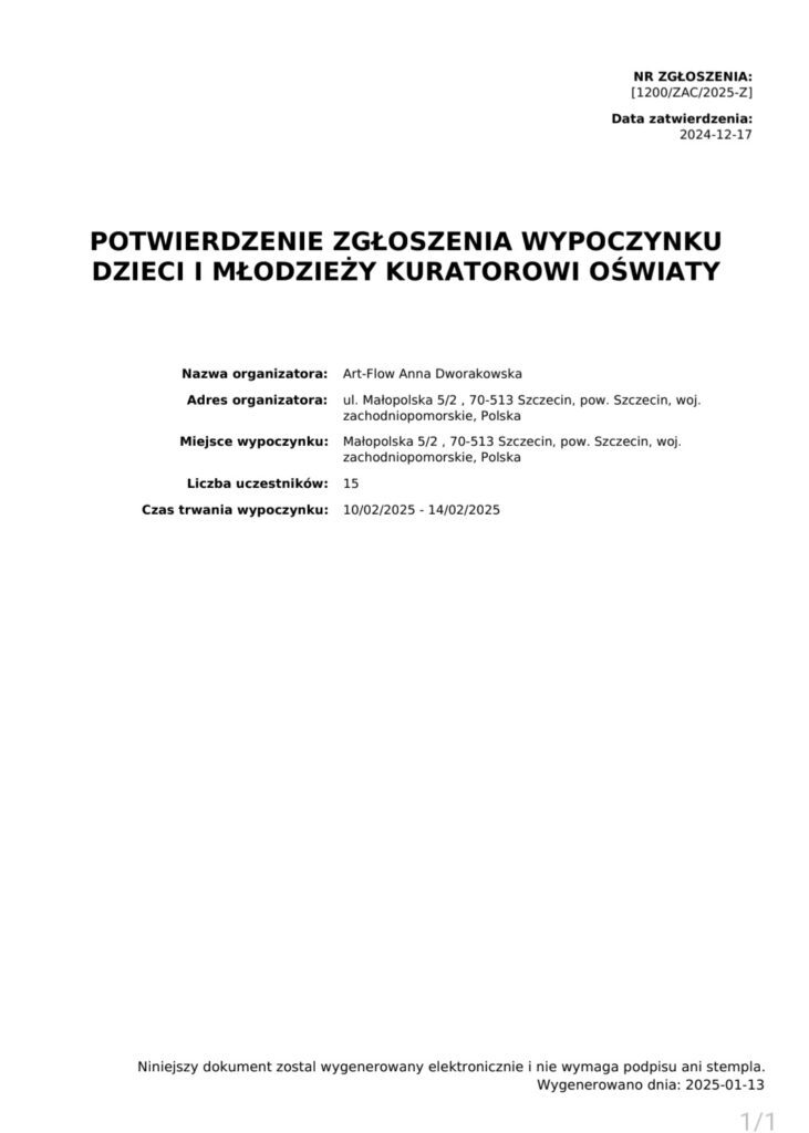 TERMINY I HARMONOGRAM PÓŁKOLONII